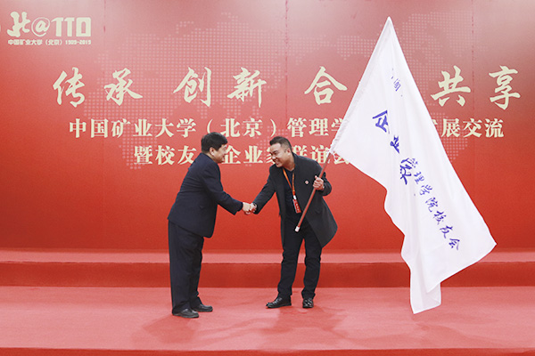 安景文向校友企业家联谊会授旗