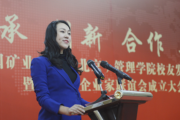 校友代表张爱静介绍校友会企业家联谊会筹备情况