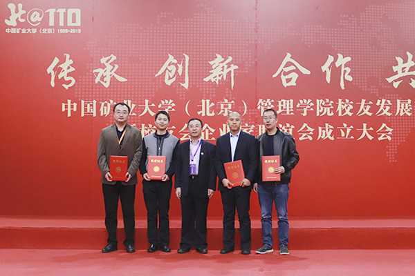 校友会会长安景文向企业家联谊会授旗,校友会会长王立杰向企业家联谊会提出要求,校友企业家代表张爱静、宗建军、孙金涛表示要将广大校友企业家凝聚在一起,加强校企合作、校友合作,促进资源共享,实现发展共赢。